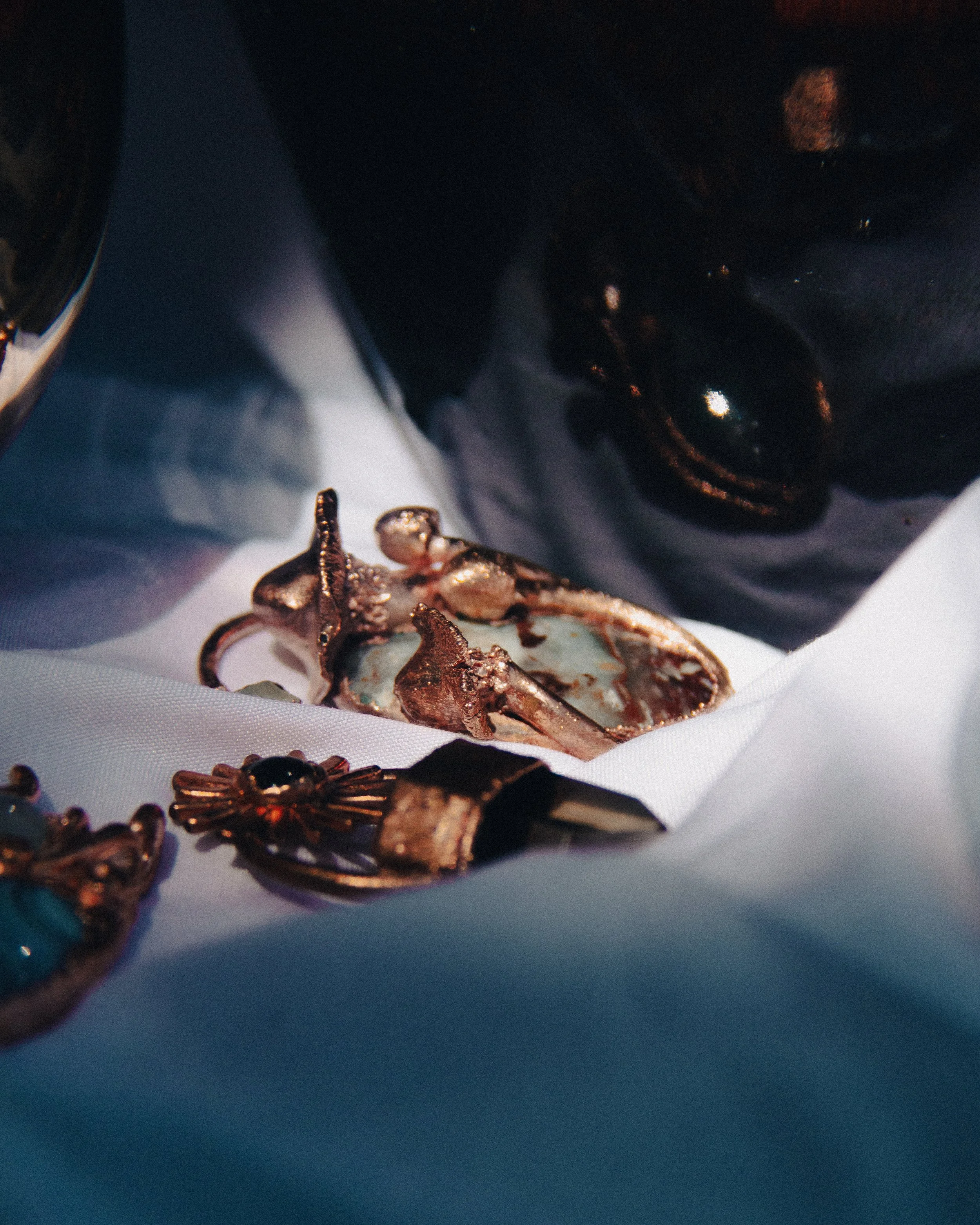 I was given the opportunity to photograph and style these beautifully handcrafted pieces by DIVINE & COPPER. This was my first product photography experience; an inspiring, free-flowing creative process without any judgment or constraint. The pieces truly do speak for themselves, and I wanted to envelope them in complementary scenery and frame them with both warm and cool light. Every photo was taken with the intent to show off the delicate craftsmanship and natural elements that tie the piece to the wearer.